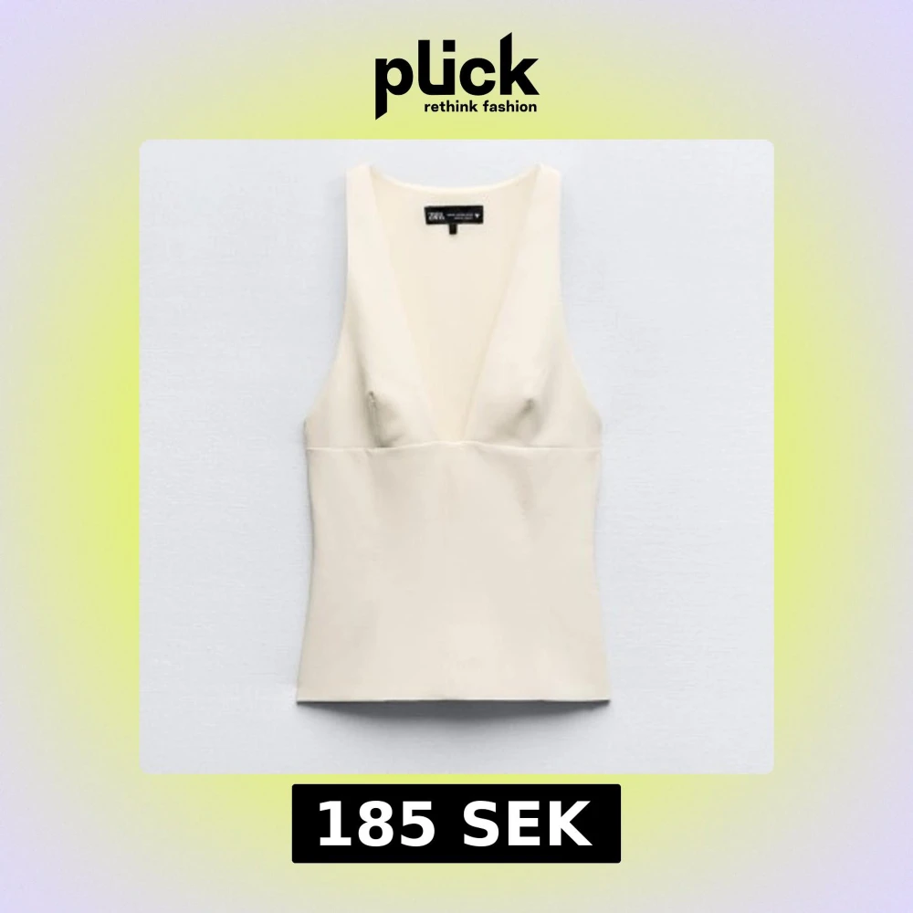 Snygg vit linnetopp från Zara med djup v-ringning. Är i storlek M men skulle säga att de passar en s. Bysten är omsydd för att passa en med mindre byst!🩷