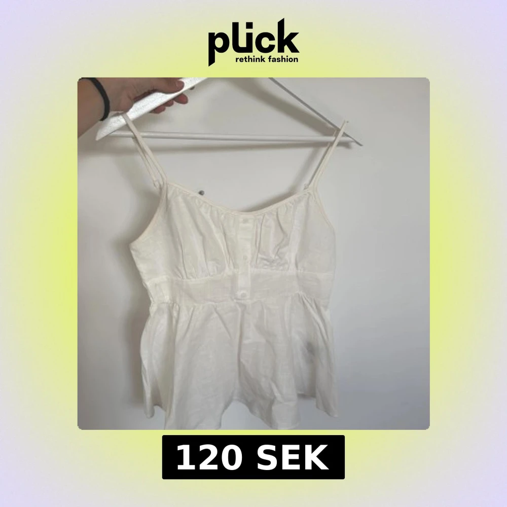 Söt vit linnetopp med smala axelband och knappar framtill. Aldrig använd