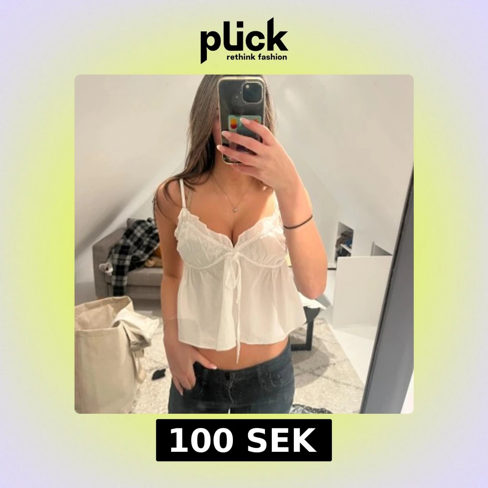 Supersöt vit linnetopp med smala axelband, volangdetaljer vid bysten och knyt framtill. Toppen är croppad och har en luftig passform, perfekt för varma dagar. Enkel att styla med jeans eller kjol för en fräsch look.