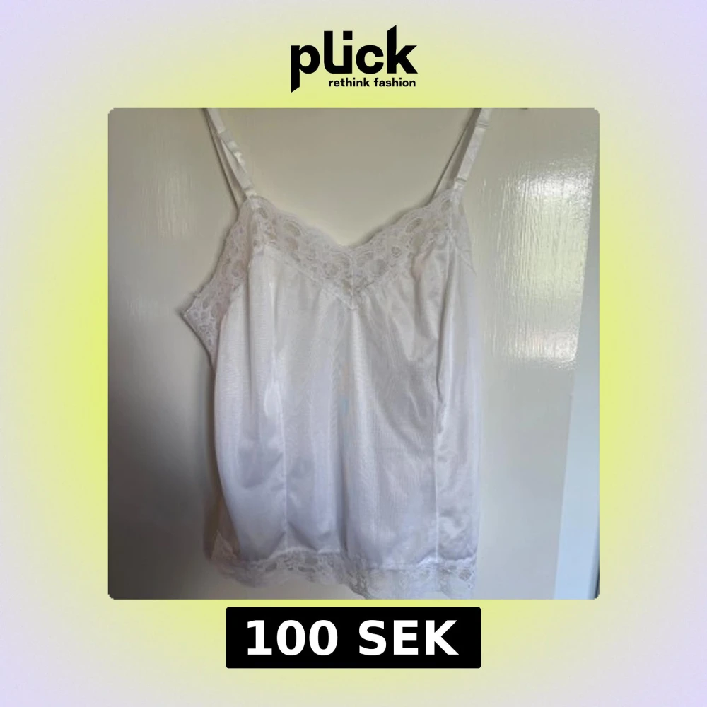 Säljer en vit linnetopp med tunna axelband och fina spetsdetaljer längs halsringningen och nederkanten. Pris kan diskuteras!