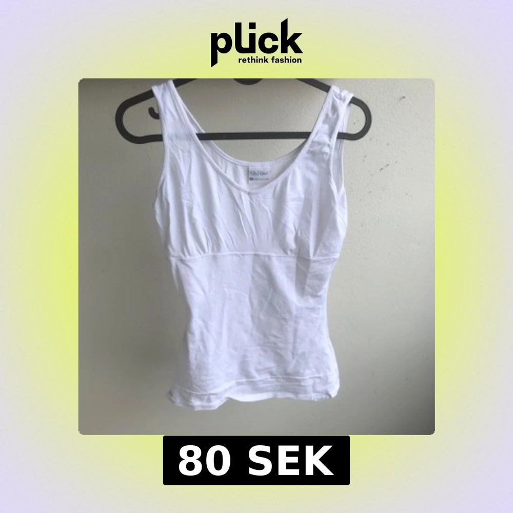 Säljer en enkel och vit linnetopp från. Toppen har v-ringning, breda axelband och en söm under bysten som ger en snygg passform vid brösten. Den är i storlek L men är som S.