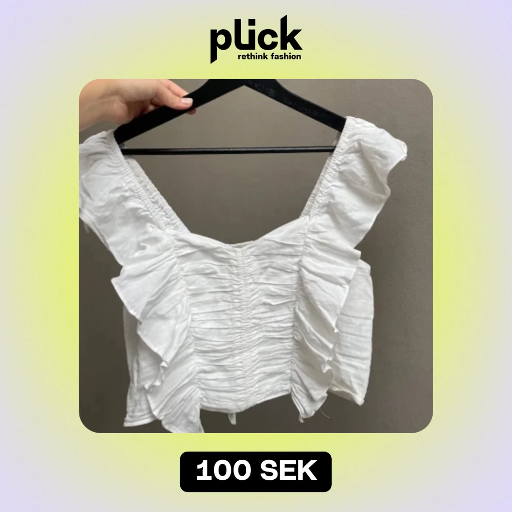 Säljer en superfin vit linnetopp i linneblandning. Toppen har volanger längs axlarna och en smockad design som ger en snygg passform. Perfekt för sommardagar eller en festlig kväll!