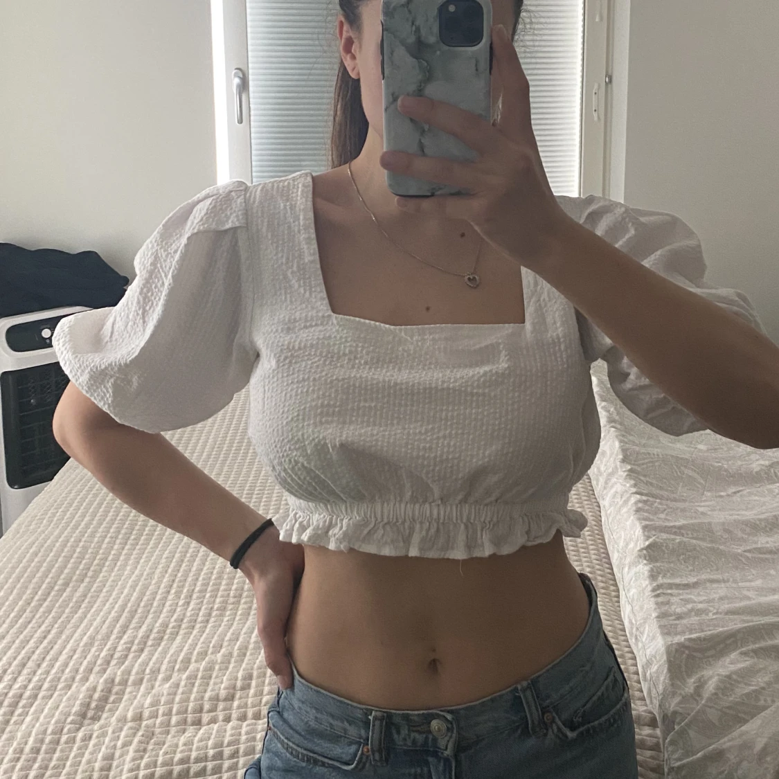 Topp från NA-KD, jätte gullig med volang under bysten, använd fåtal gånger, använd gärna köp nu knappen