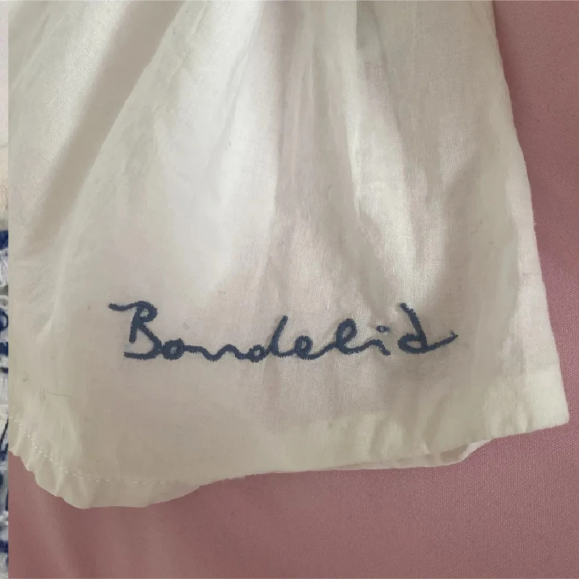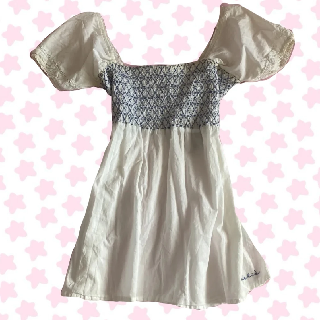 Supersöt babydoll top från Bondelid i vitt med blått broderat mönster upptill. Pris kan diskuteras ❣️
