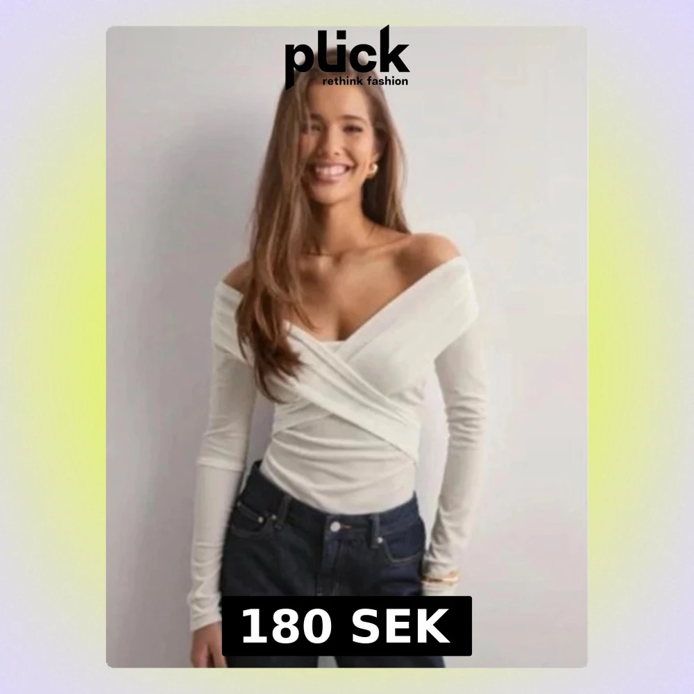 Supersnygg vit body från Nelly i mjuk sammet med omlott-detalj och offshoulder. Långärmad och figurnära passform. Riktigt fin och prislappen är kvar