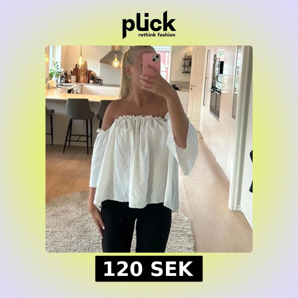 Säljer denna superfina vit offshoulder blus. Köpt på Plick så vet tyvärr inte vart den är ifrån. Storlek S men passar S-L då den är jätte strechig. Jättebra skick. Prisk kan diskuteras❤️