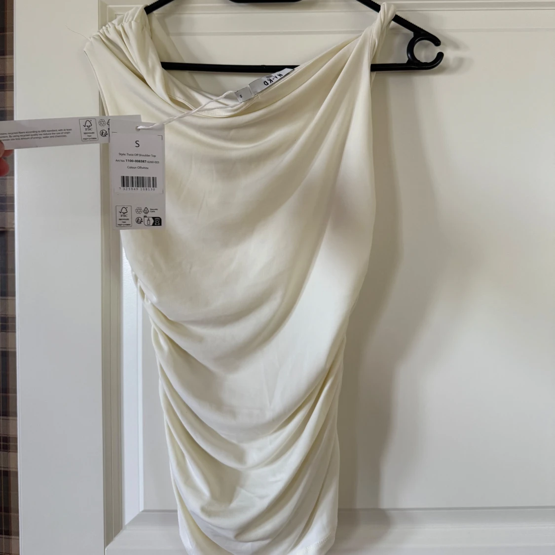 Jätte fin helt oanvänd vit offshoulder topp från nakd. Tycker den är lite för lång för min smak därför den inte kommit till användning.