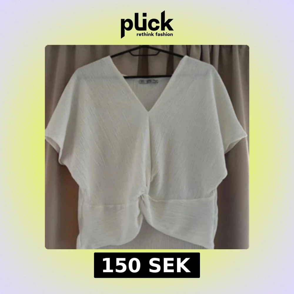 Snygg vit omlottopp med korta ärmar och v-ringning. Perfekt för en stilren look. Toppen har en knutdetalj framtill som ger en extra touch.
