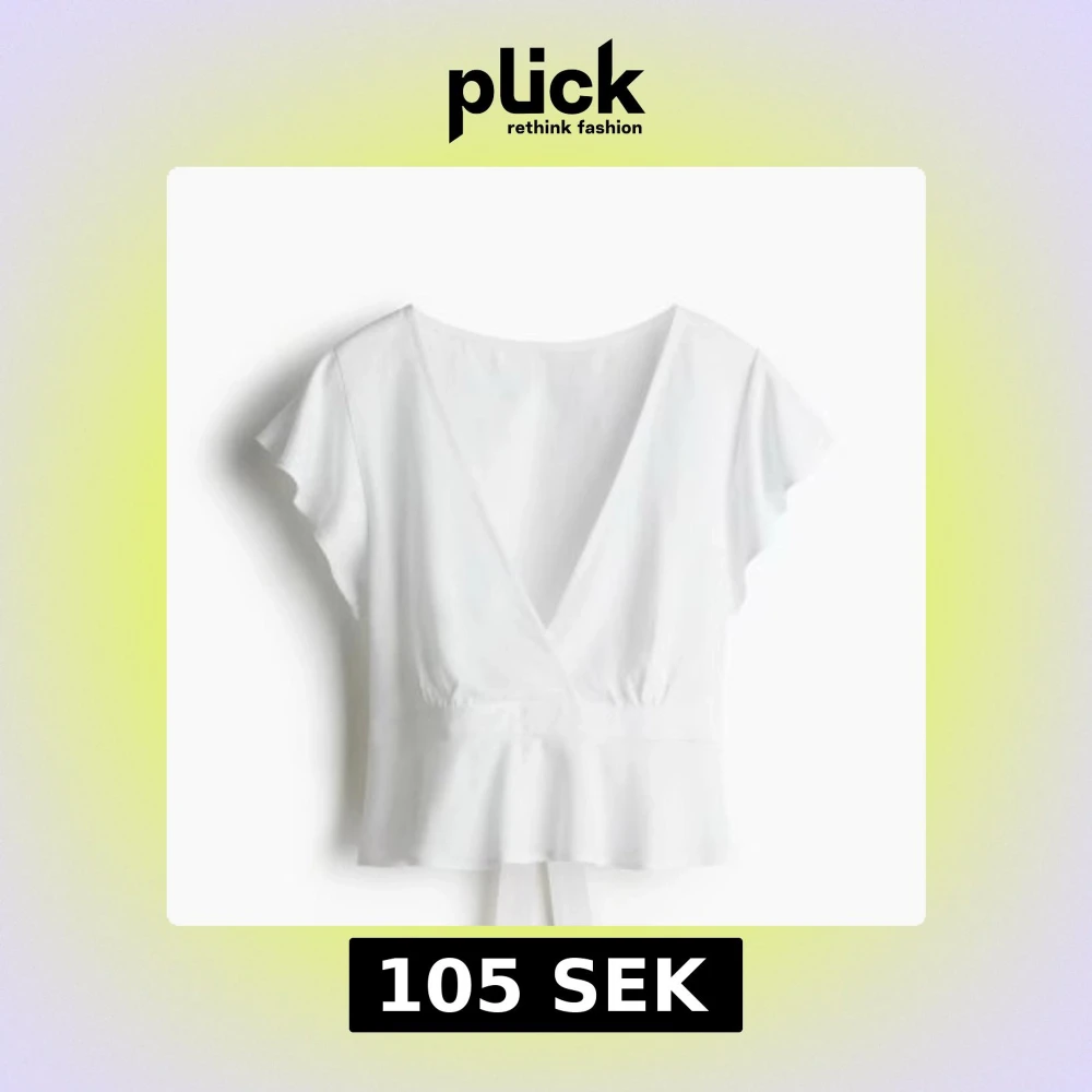 Helt ny och oanvänd vit omlottopp från H&M Divided i luftig linnemix. Toppen har korta ärmar, v-ringning och knyt i midjan som ger en snygg siluett. Perfekt till sommaren och enkel att styla med både jeans och kjol.