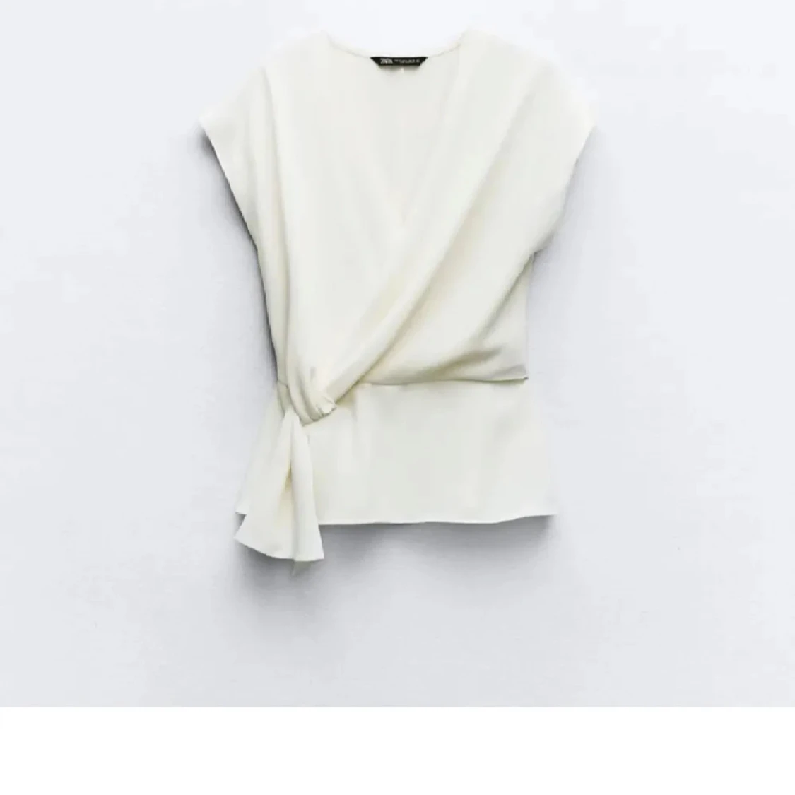 Snygg vit omlottopp från Zara. Knappt använd så den är i ett jättefint skick! Säljer för att den inte passade mig riktigt. 💕💕