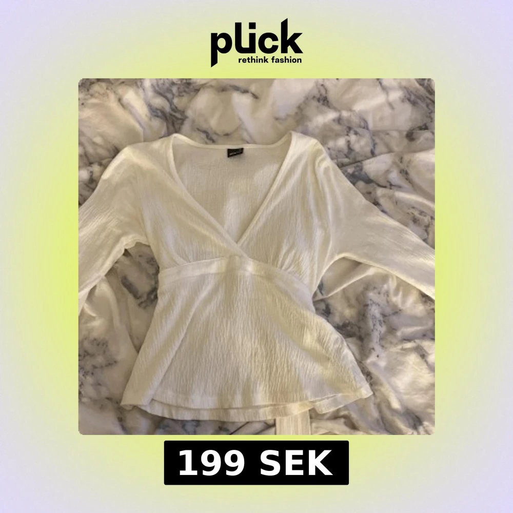 Säljer en vit omlottopp från Monki med långa ärmar och v-ringad hals. Toppen har snygga knytband i midjan och är tillverkad i ett lätt, krinklat tyg som ger en cool struktur. Perfekt att styla med jeans eller kjol för en fräsch look.
