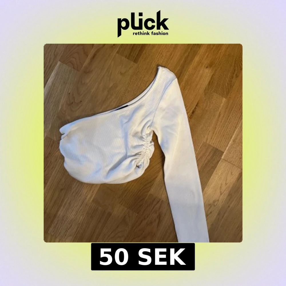 Snygg vit oneshoulder topp med lång ärm från Zara. Använd 2-3 ggr, storlek S men passar XS