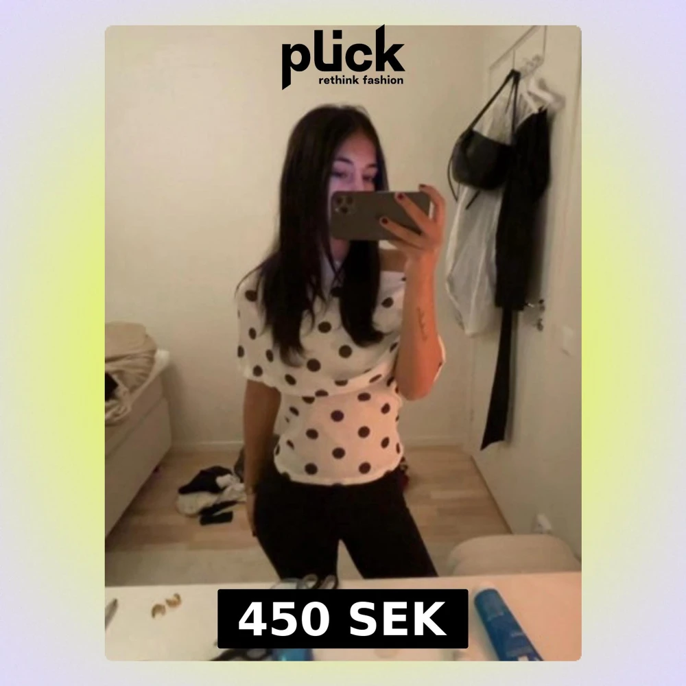 Säljer en vit blus med stora svarta prickar och offshoulder-modell från Gina. Toppen har korta ärmar och en lös passform som ger en avslappnad men trendig look. Perfekt för dig som gillar att sticka ut med mönster och vill ha något lekfullt i garderoben.