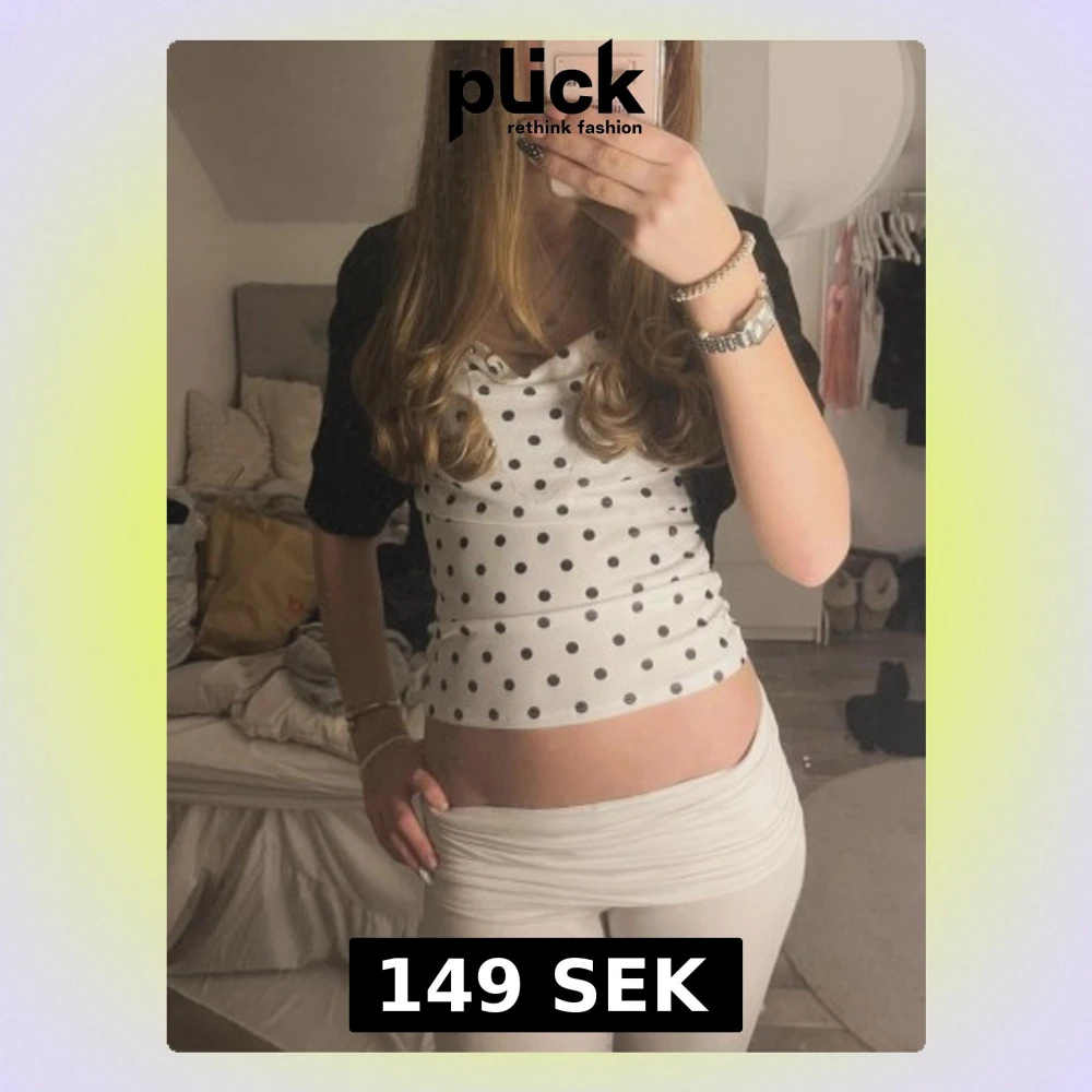 Säljer en vit croppad linnetopp med svarta prickar och tunna axelband. Toppen har en lätt draperad urringning och är figurnära i modellen. Perfekt för dig som gillar en lekfull och trendig stil. Har behövt sytt om spännet pga tidigare ägare och det vart lite snurrigt, men går att sprätta upp och sy om om man vill.