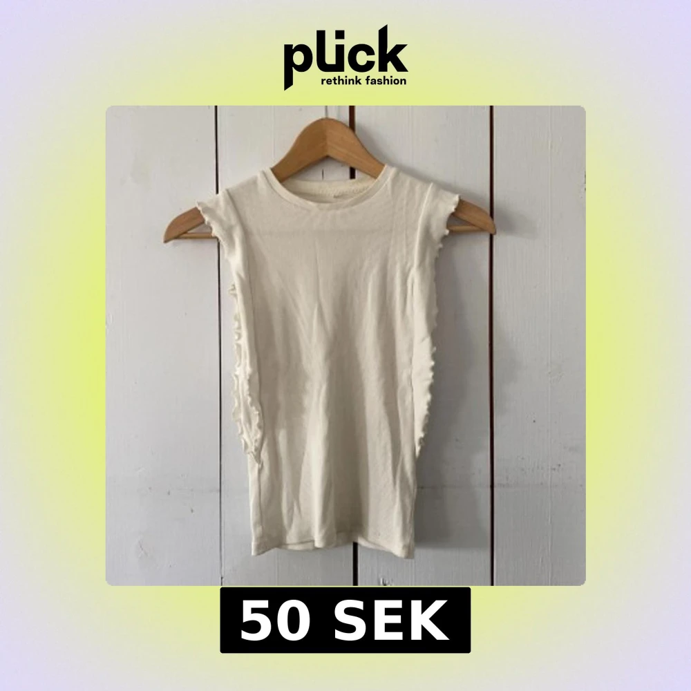 Supersöt vit ribbad topp från Name It i ärmlös modell med volangkant längs ärmhålen. Toppens material är mjuk bomull och den har en tight passform som sitter snyggt. Perfekt för en fräsch och enkel look.
