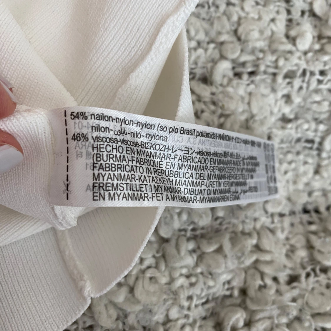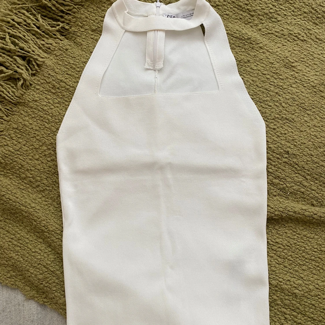 Supersnygg vit ärmlös topp från Zara med ribbad struktur och unik fyrkantig cut-out vid halsen. Hög halsringning med bred krage och dragkedja bak. Perfekt för dig som gillar stilrena och trendiga plagg med det lilla extra.