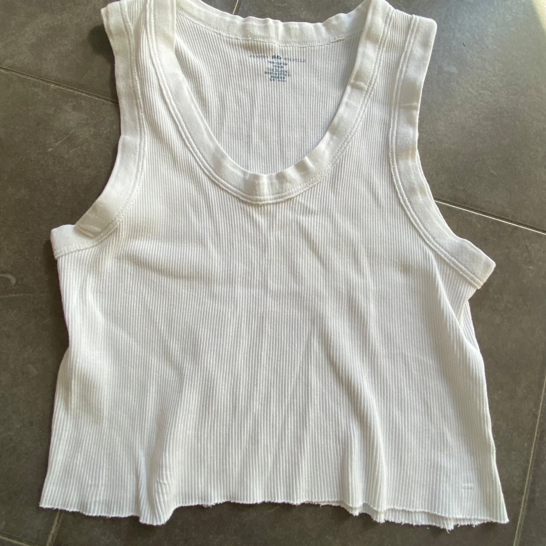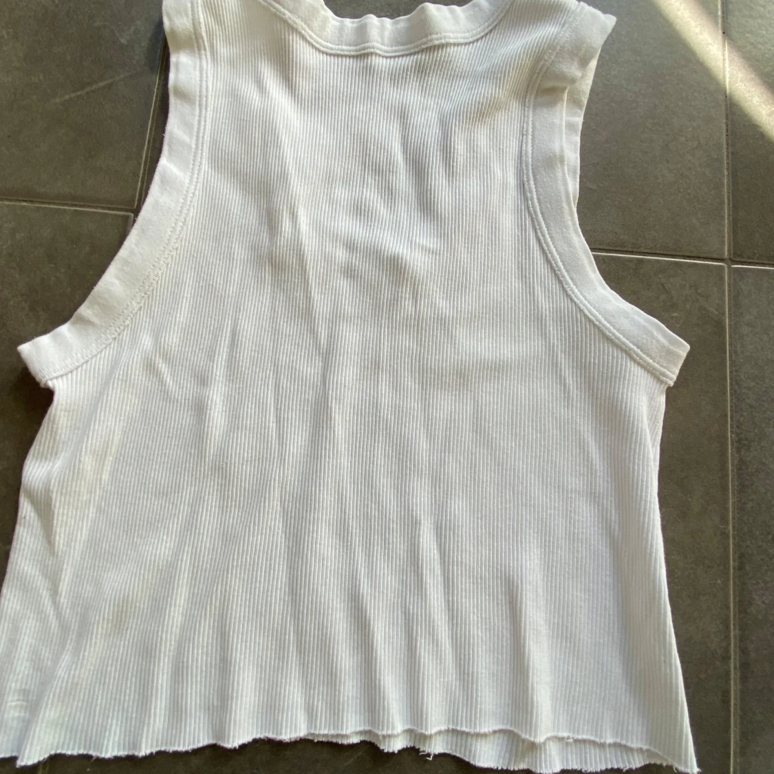 Säljer en vit ribbad croppad linnetopp från Brandy Melville. Toppen är ärmlös med rund halsringning och har en mjuk, stretchig bomullskvalitet. Perfekt till varma dagar eller som lager på lager-plagg.