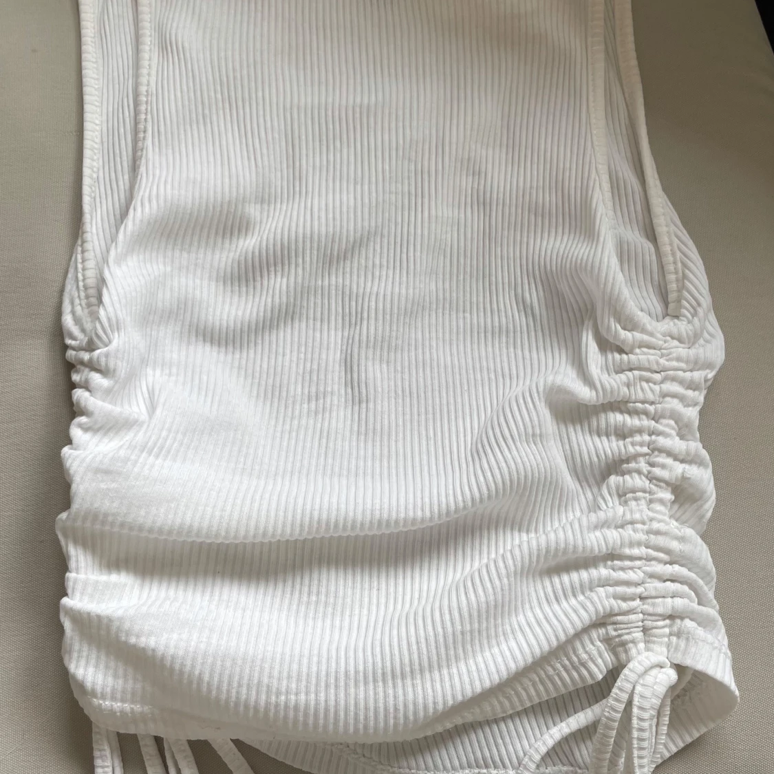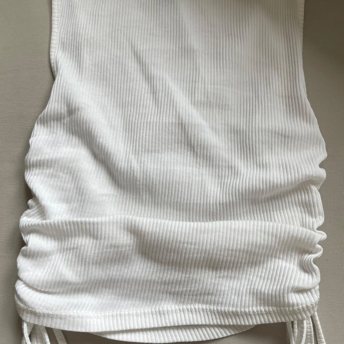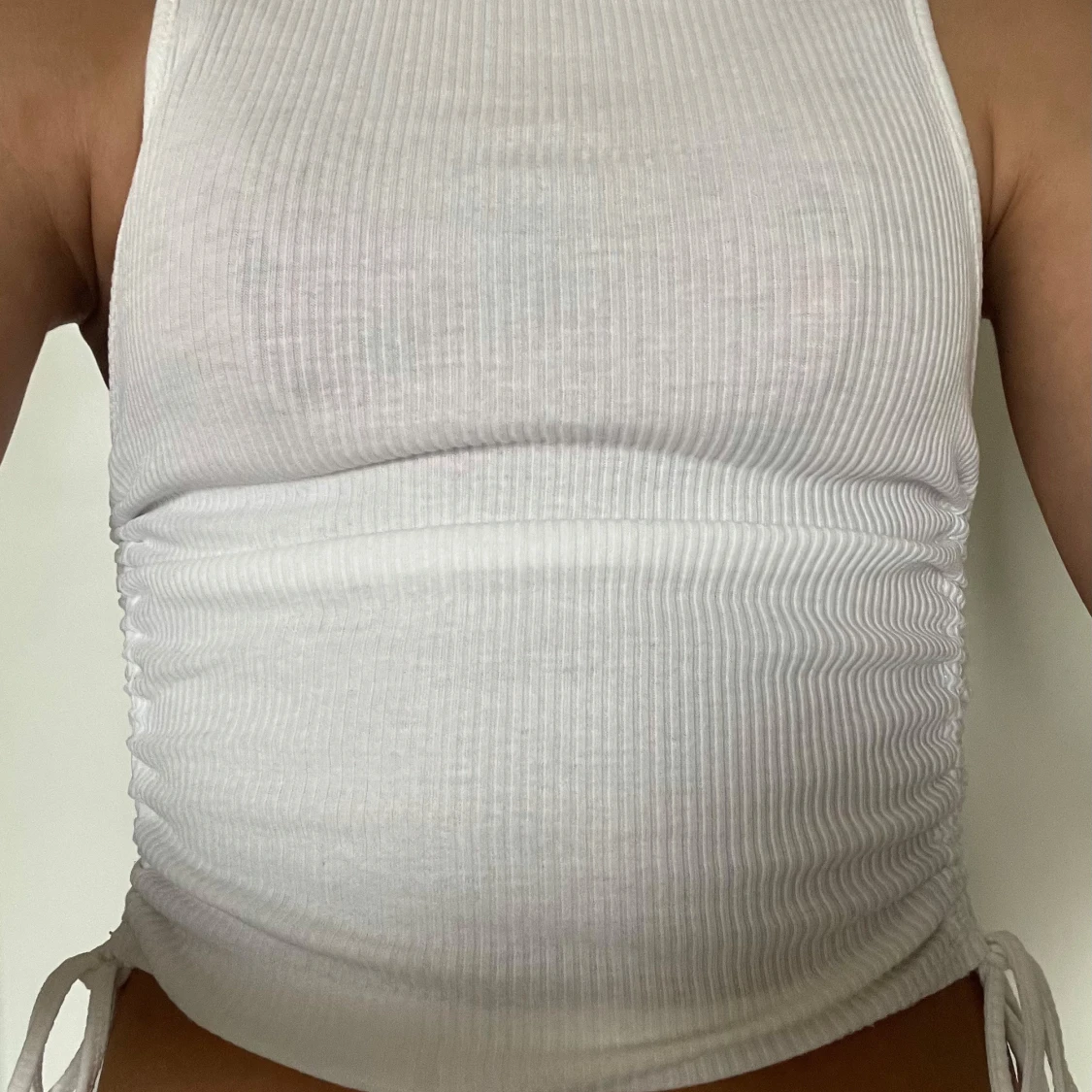 Säljer en vit ribbad linnetopp från H&M Divided i storlek XS. Toppen är croppad och har en justerbar snörning i sidorna som ger en cool känsla. Perfekt för varma dagar och enkel att matcha med vilken outfit som helst. Den är väldigt liten i storleken, men ganska stretchig.