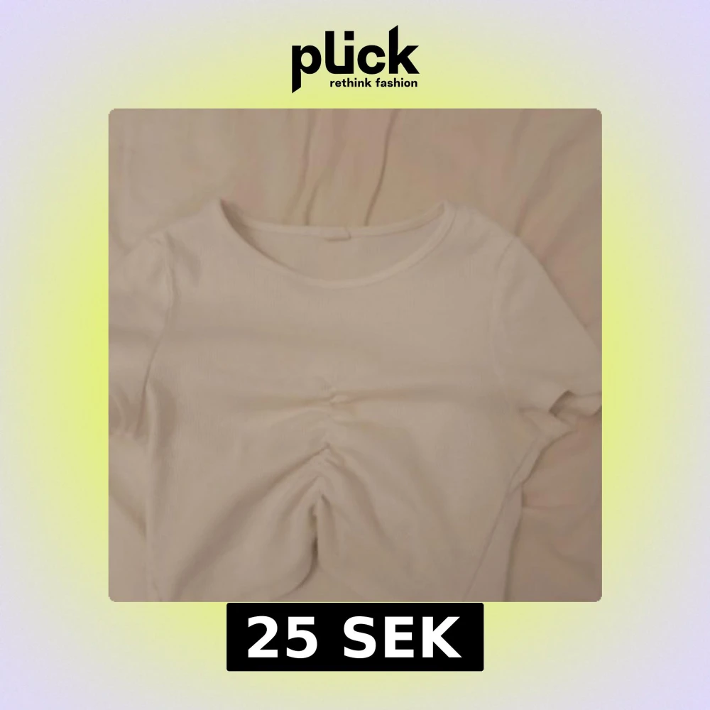 Säljer en vit ribbad croppad topp med korta ärmar och snygg rynkdetalj framtill. Perfekt för dig som gillar en enkel men trendig stil. Toppens material är mjukt och stretchigt för en bekväm passform.