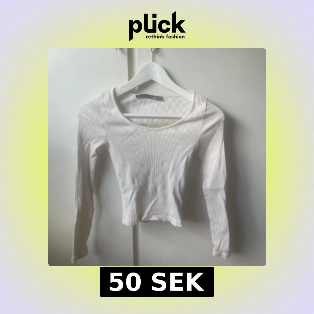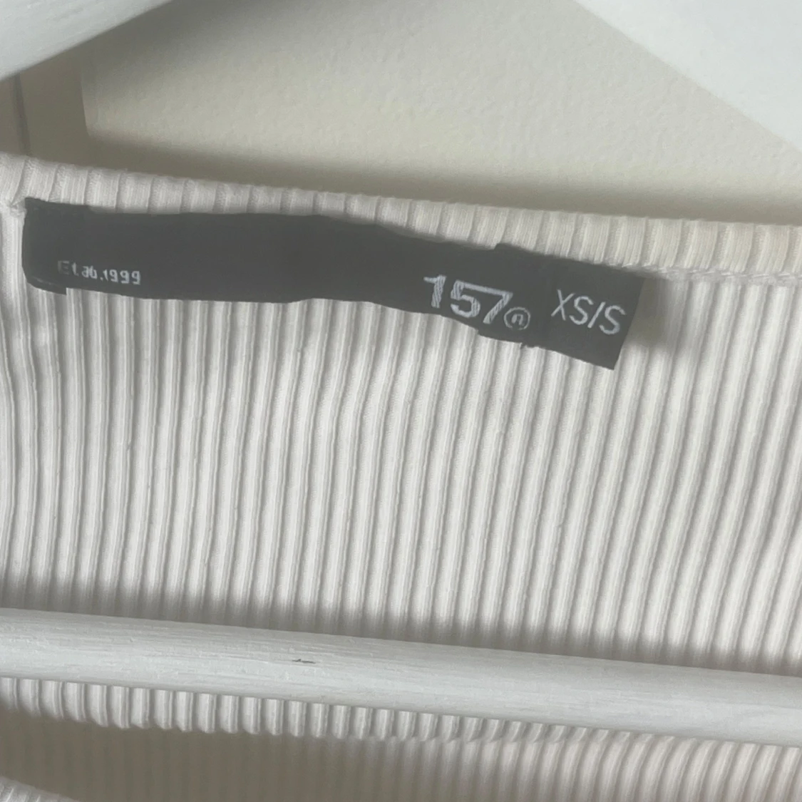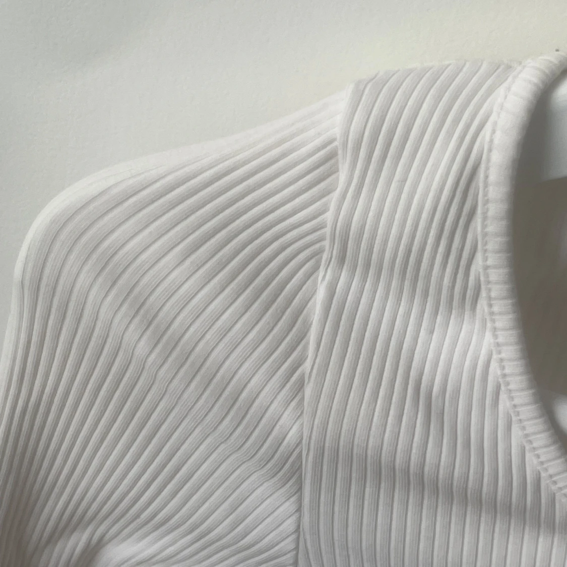 Säljer en vit långärmad topp från 157 i storlek XS/S. Toppen är ribbad med rund halsringning och har en slimmad passform, passar till det mesta🥰