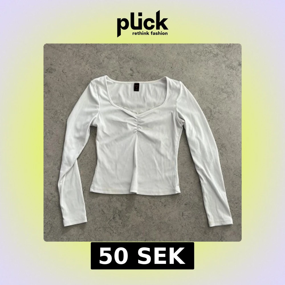 Supersöt vit långärmad topp från Romwe/Shein i ribbat material. Toppen har v-ringning med spetskant och snygg rynkdetalj framtill. Figurnära passform som passar perfekt till jeans eller kjol. Storlek S (EU 36).