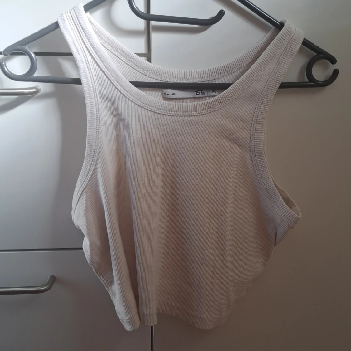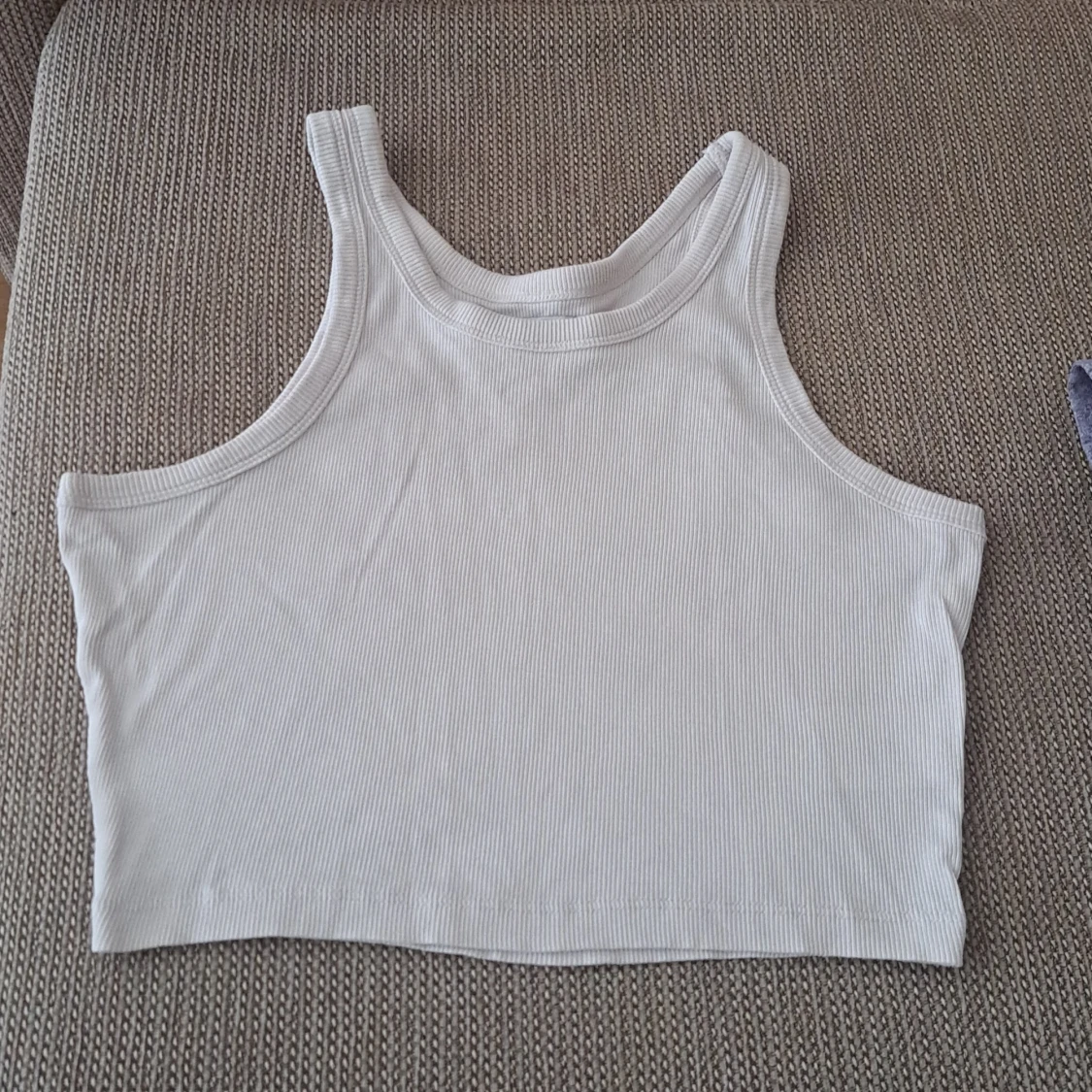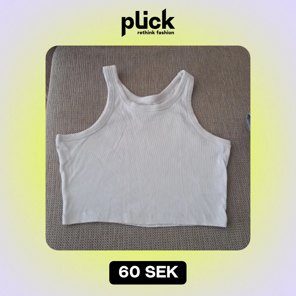 Säljer en stilren vit ribbad linnetopp i storlek M. Perfekt för sommardagar eller som ett basplagg i garderoben. Toppen är ärmlös och har en croppad passform som ger en modern look.oanvänd. 1000% nytt.