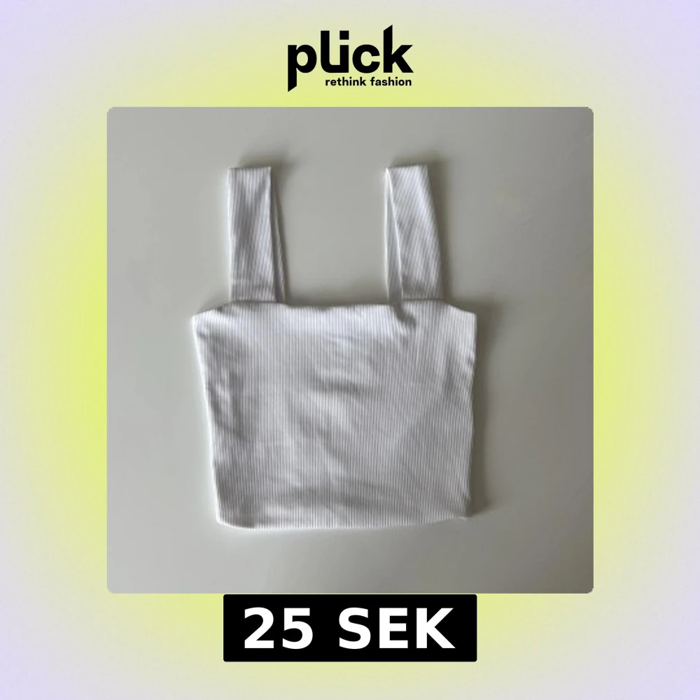 Snygg vit ribbad linnetopp med breda axelband och croppad passform. Toppen är använd ca 5 gånger och är som ny.