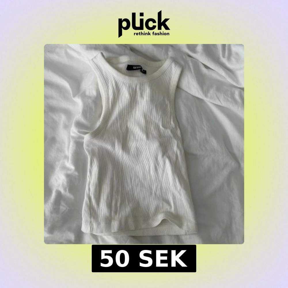 Säljer en vit ribbad linnetopp från Bik Bok. Superskön och passar till dom flesta tillfällena😍