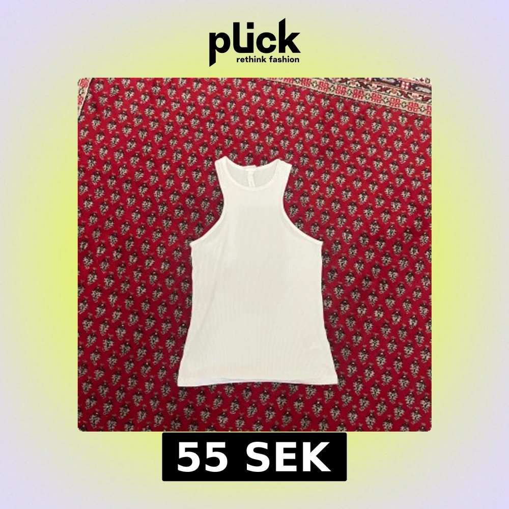 Säljer en vit ribbad linnetopp från H&M i storlek M. Toppen har en ärmlös design med breda axelband och rund halsringning. Materialet är mjukt och stretchigt med 94% modal och 6% elastan, vilket gör den riktigt skön och följsam.
