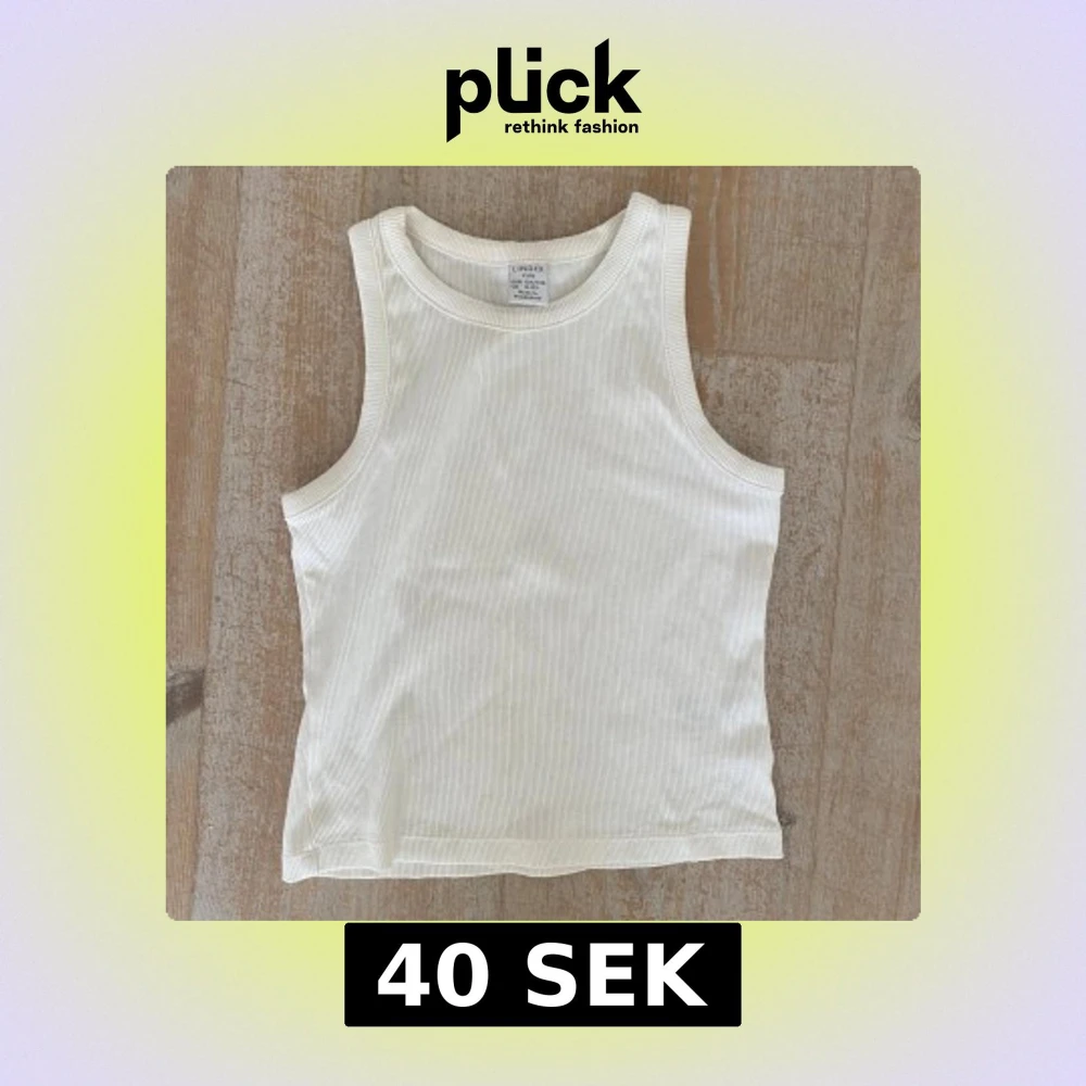 Säljer en enkel och stilren vit ribbad linnetopp från Lindex Kids. Toppen är ärmlös och har rund halsringning, perfekt för varma dagar eller som lager under andra plagg.
