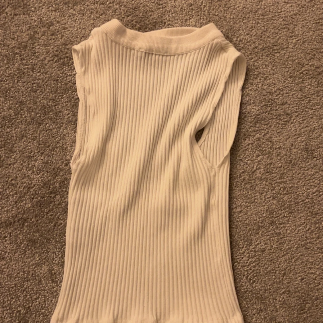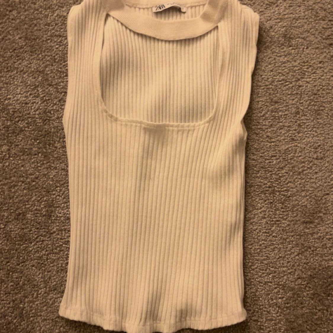 Säljer en vit ribbad linnetopp från Zara med fyrkantig ringning och ärmlös design. Toppen har en tight passform och är tillverkad i mjuk, stretchig bomull. Perfekt att styla med jeans eller kjol för en clean look. Knappt använd!