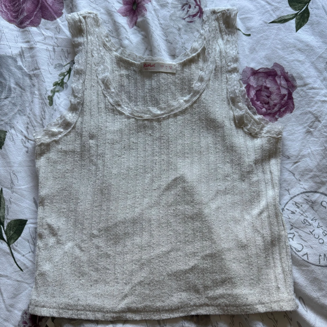 Supersöt vit ribbad linnetopp från Shein med spetsdetaljer runt halsringning och ärmhål. Toppen är ärmlös och har en figurnära passform som framhäver siluetten. Perfekt att styla med jeans eller kjol för en fräsch look.