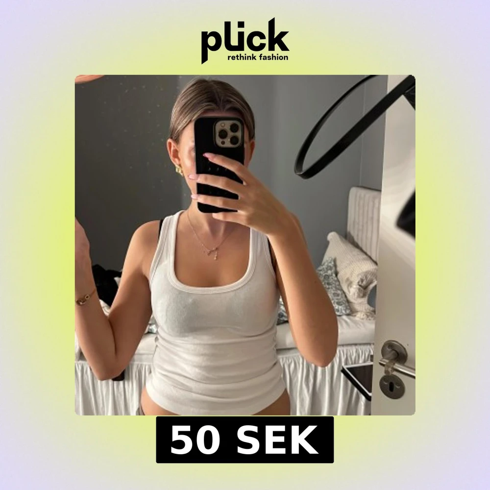 Säljer en klassisk vit ribbad linnetopp med breda axelband och rundad urringning. Perfekt att styla till jeans eller kjol för en enkel och fräsch look. Materialet är mjukt och stretchigt för en bekväm passform.