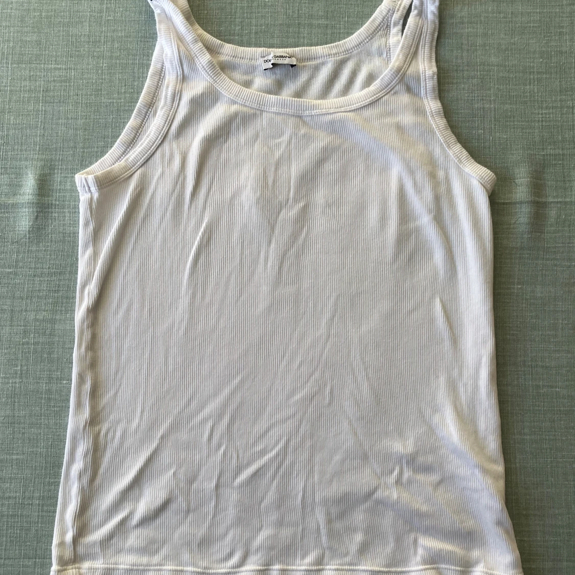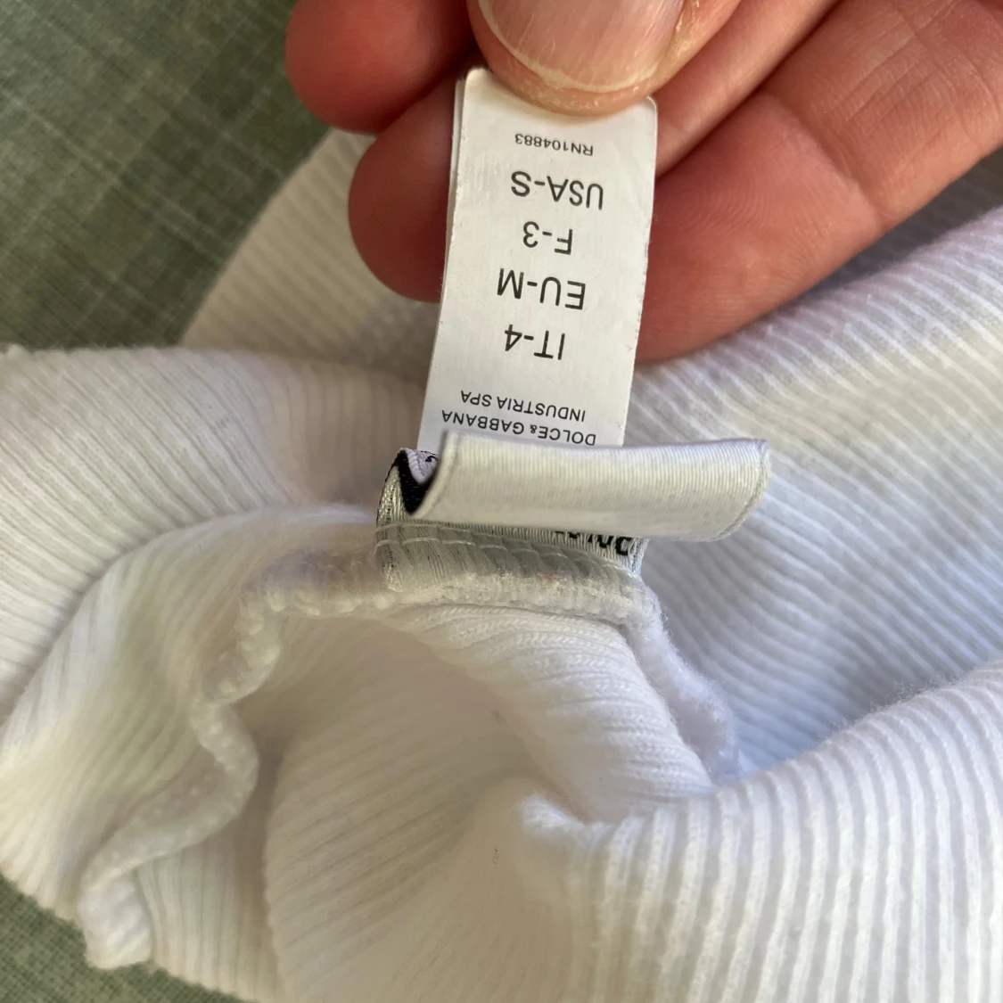 Säljer en vit ribbad tanktop från Dolce & Gabbana. Toppen har klassisk rund halsringning och ärmlös design med breda axelband. Materialet är mjukt och stretchigt, perfekt för en clean och stilren look. Passar dig som gillar exklusiva märken och enkel stil.