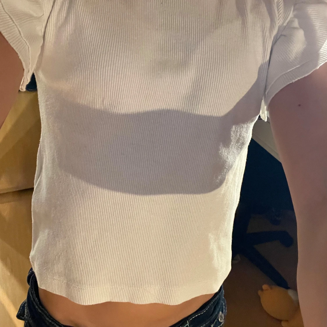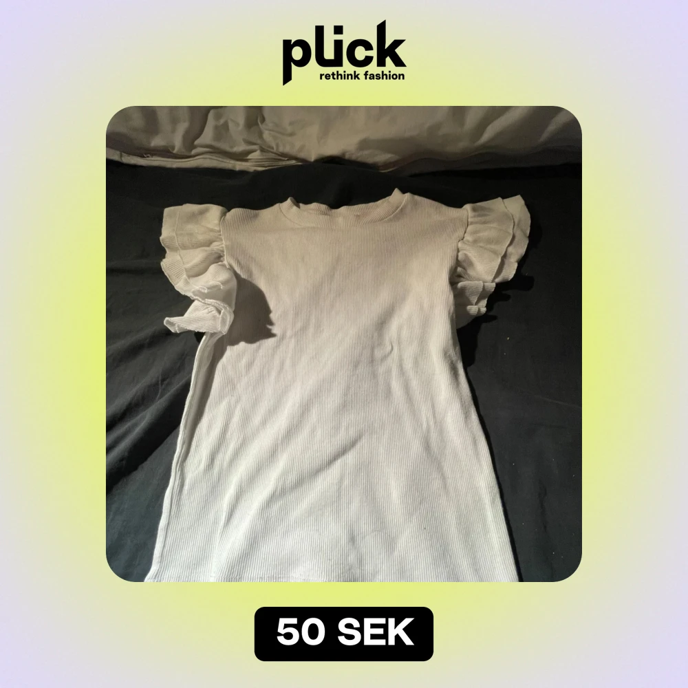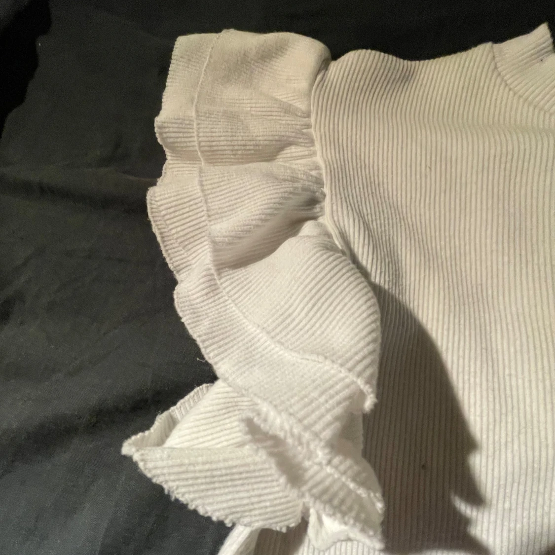 Säljer en superfin vit ribbad topp från Gina Tricot. Den har korta ärmar med volangdetaljer som ger en söt touch. Perfekt för både vardag och fest! Toppen är i bra skick och passar perfekt till jeans eller kjol.💓