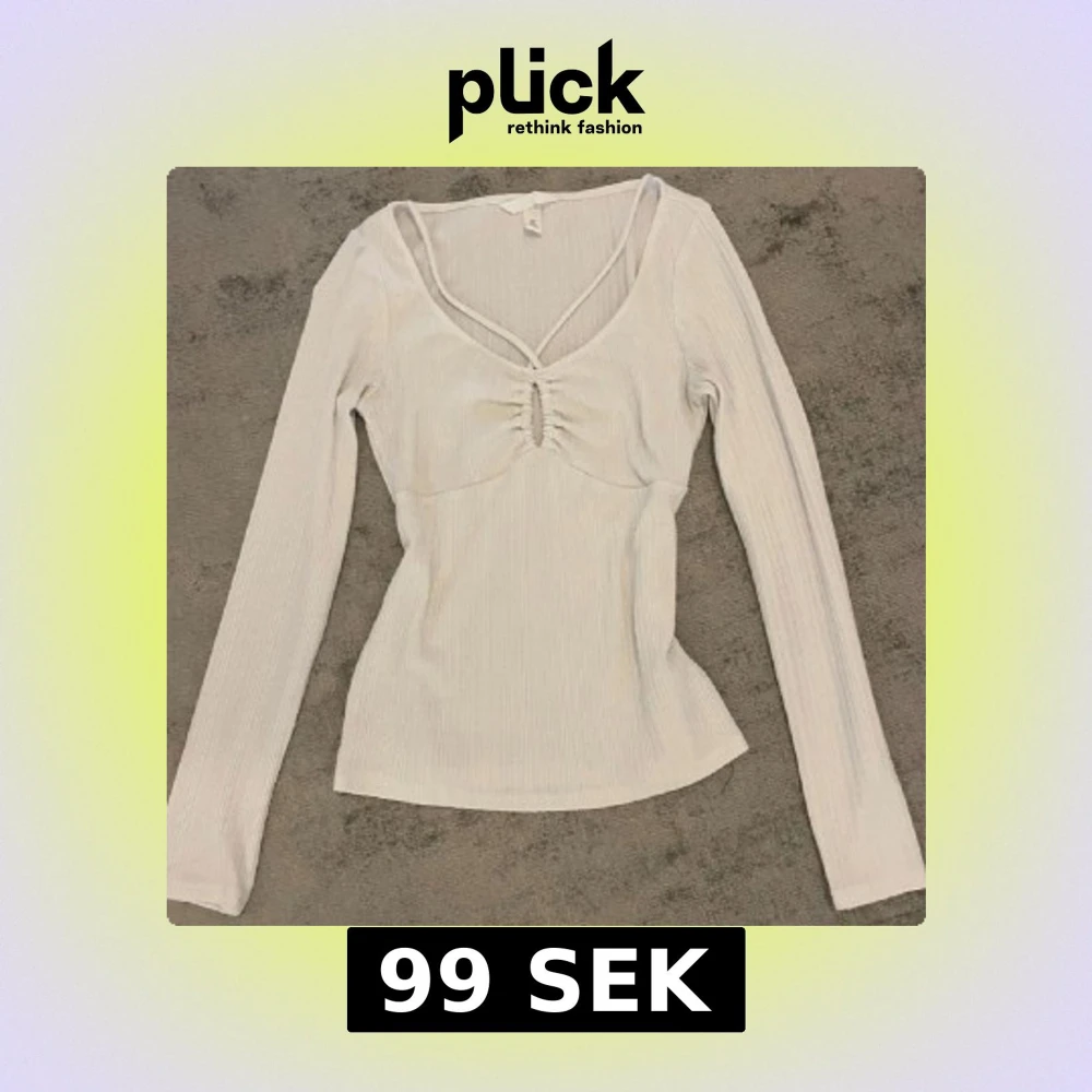 Säljer en stilren vit ribbad topp från H&M med långärmad design och v-ringad hals. Toppen har en snygg snörning framtill som ger en extra touch. Perfekt för både vardag och speciella tillfällen. knappt använt . Den är i bra skickkkk