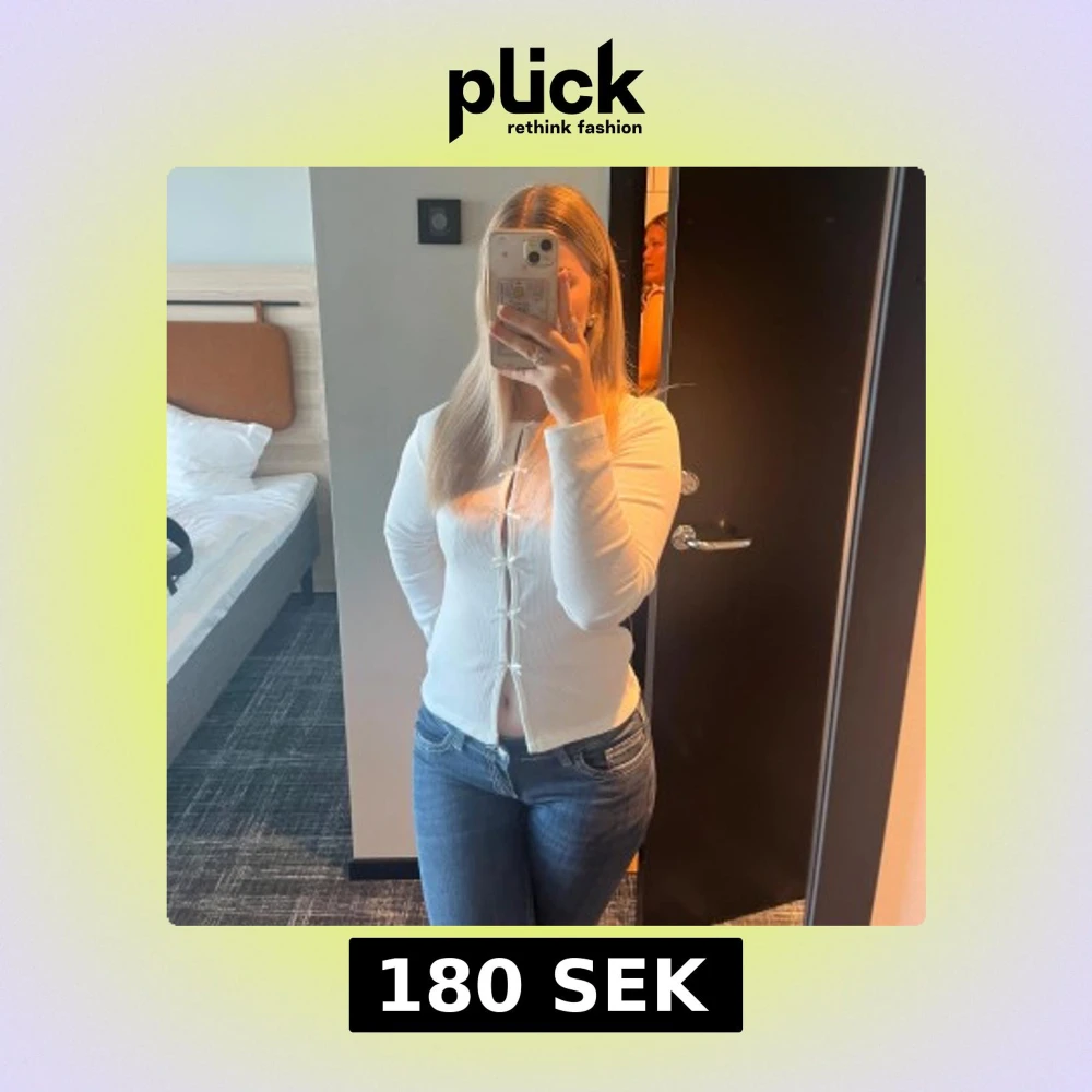 Säljer en vit långärmad topp med ribbad struktur och snygga knyt framtill. Modellen är croppad och har en lätt v-ringning. Perfekt för dig som gillar trendiga detaljer och vill ha en stilren men ändå unik look.