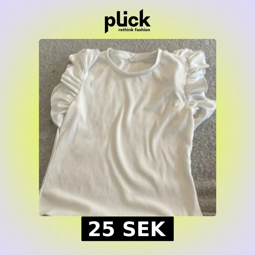 Supersöt vit ribbad topp från SHEIN med korta volangärmar som ger en extra touch. Perfekt för dig som gillar en enkel men ändå trendig stil. Materialet är mjukt och stretchigt för skön passform.💕