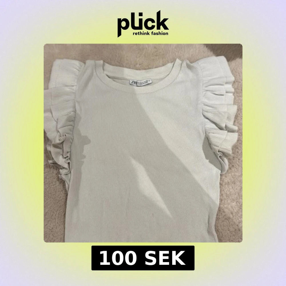 Supersöt vit ribbad topp från Zara med volangdetaljer på axlarna. Toppen är ärmlös och har en rund halsringning. Perfekt för dig som gillar en feminin och trendig stil. Materialet är mjukt och stretchigt för extra komfort.