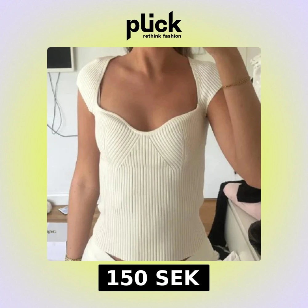 Supersnygg vit ribbad topp med markerad sweetheart-ringning och korta ärmar. Toppen är figurnära och har en modern, strukturerad look som passar perfekt till jeans eller kjol. Materialet är stretchigt och bekvämt.