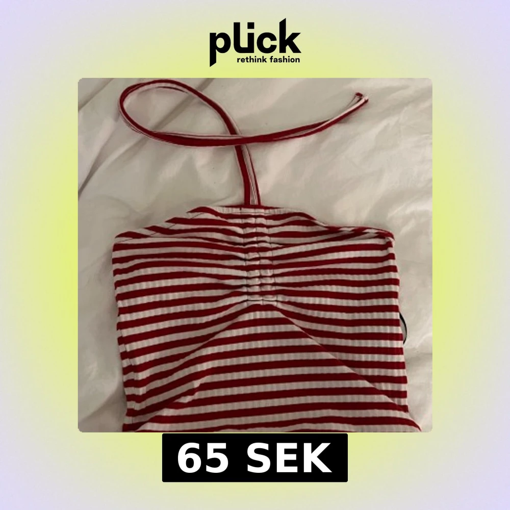 Säljer en rödvit randig halterneck topp från Pieces i ribbad bomull. Toppen har smala ränder, knyt runt nacken och rynkade detaljer framtill. Perfekt för dig som vill sticka ut med en färgglad och trendig look.