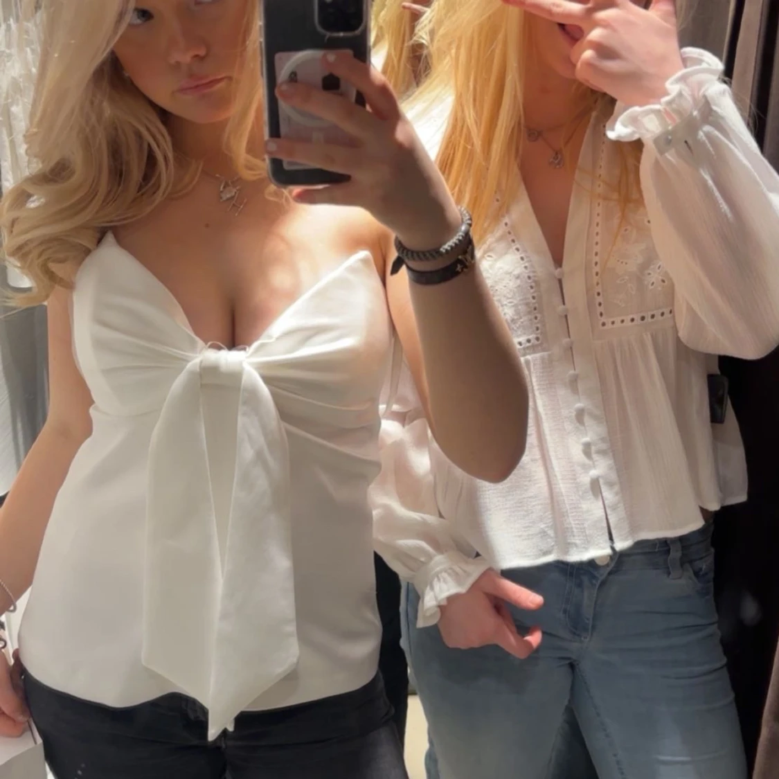 Supersöt vit bandeau topp i satin med stor rosett i framđInga defekterđToppen Ă€r endast anvĂ€nd vid ett tillfĂ€lleđ