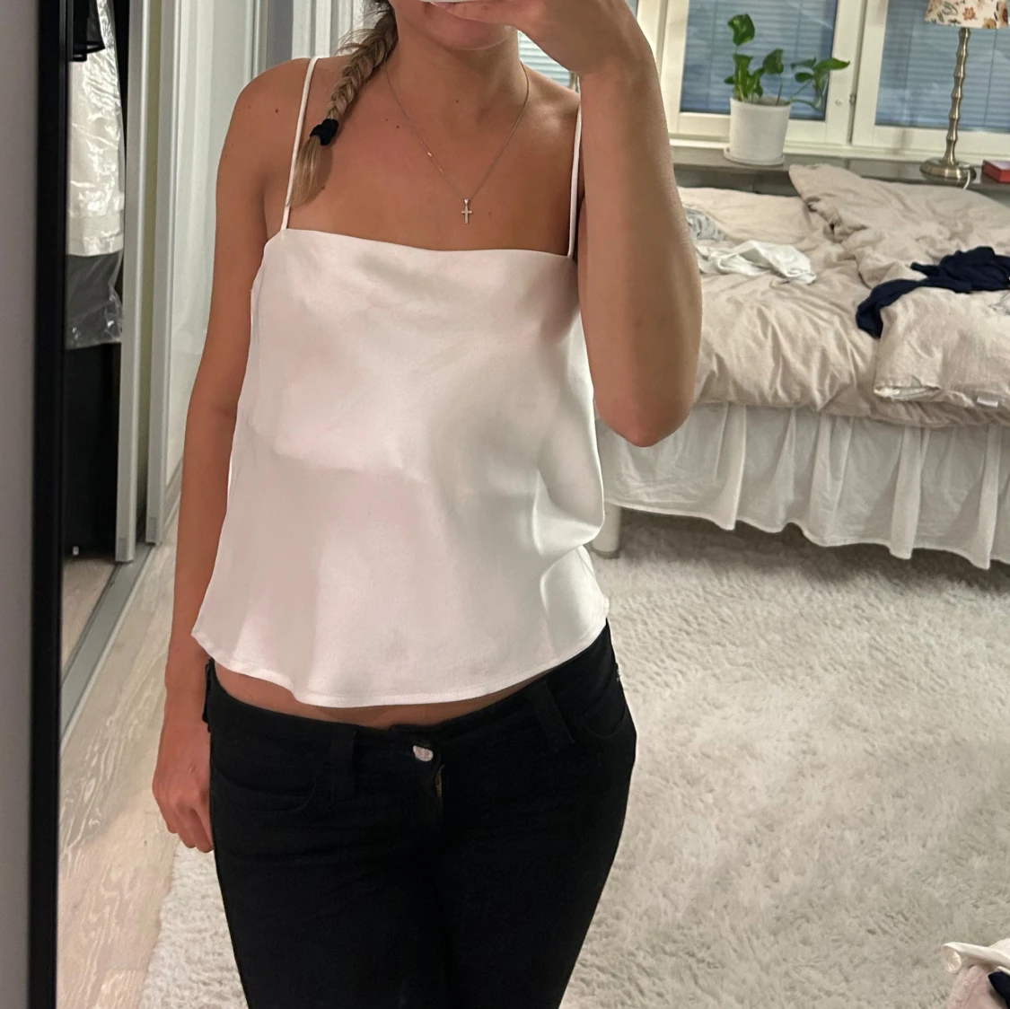 Supersnyggt vitt linne från Gina Tricot i satinliknande material. Storlek xs