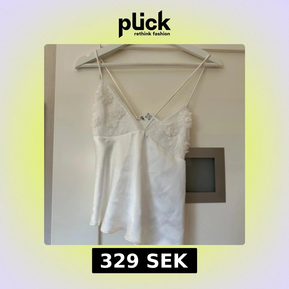Säljer ett elegant vitt satinlinne med tunna axelband och vackra spetsdetaljer vid bysten. Perfekt för en stilren look. Linnet har en mjuk och glansig yta som ger en lyxig känsla.