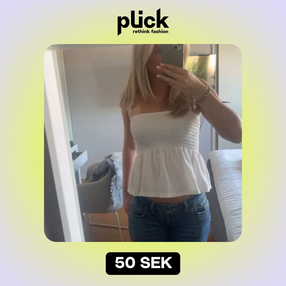 Säljer en superfin vit topp från Gina Tricot i storlek S. banden går att ta av om man vill💕den är knappt använd