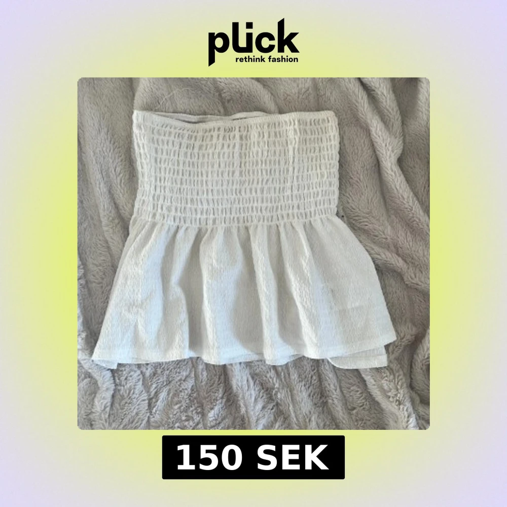 Säljer en söt vit volang tubtopp från Gina Tricot med smockad överdel och volang nertill. Perfekt för varma dagar och enkel att matcha med både jeans och kjol. Nypriset var 279 kr men den säljs för 150 kr. Skriv privat för bilder på💞😸🫰😝