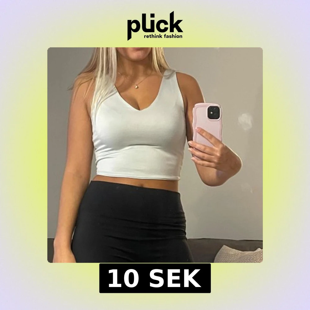 Säljer en fin vit croppad linne med snygg v-ringning. Toppen har tappat lite vit färg i tvätten så därför ett billigt pris för den! Perfekt för dig som gillar stilrena och enkla plagg med modern touch. 🤍