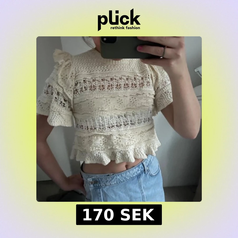 Superfin vit blus med virkade spetsdetaljer och volanger. Blusen är använd fåtal gånger men kommer tyvärr aldrig till användning då den blivit för liten.🤍🤎
