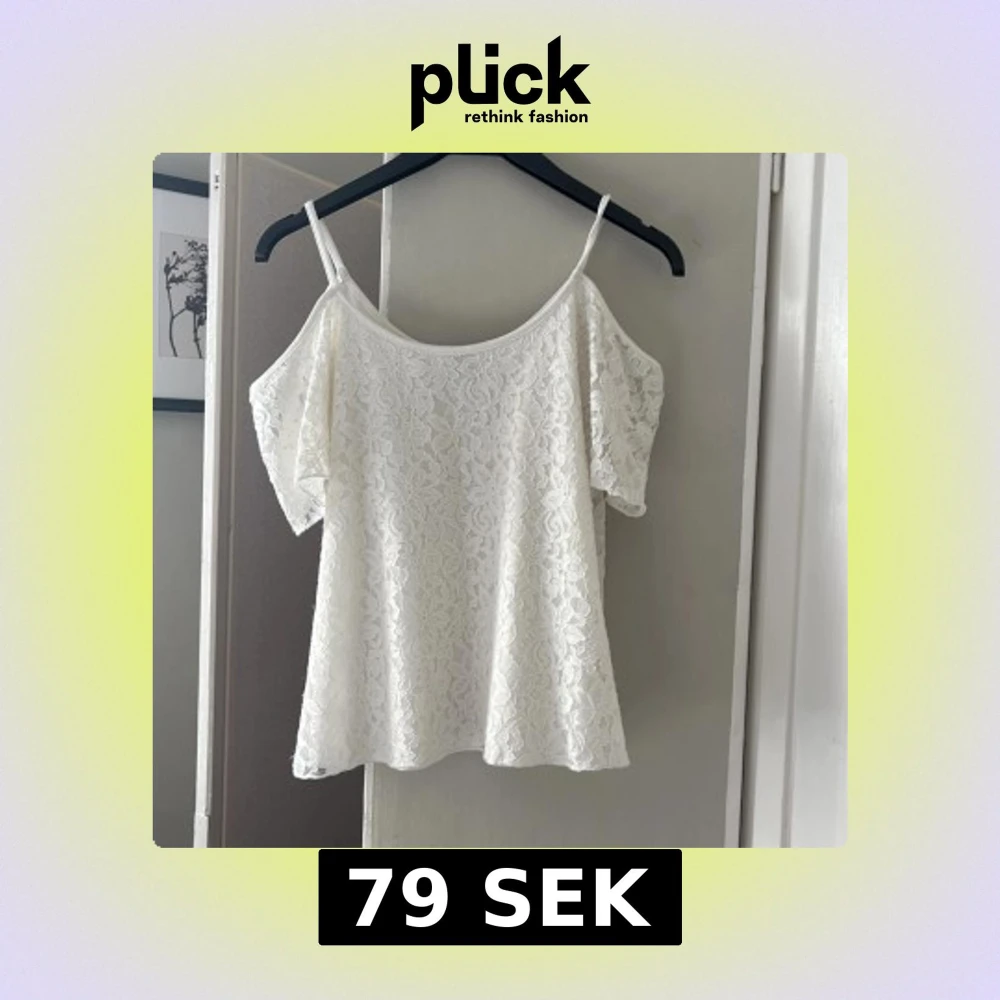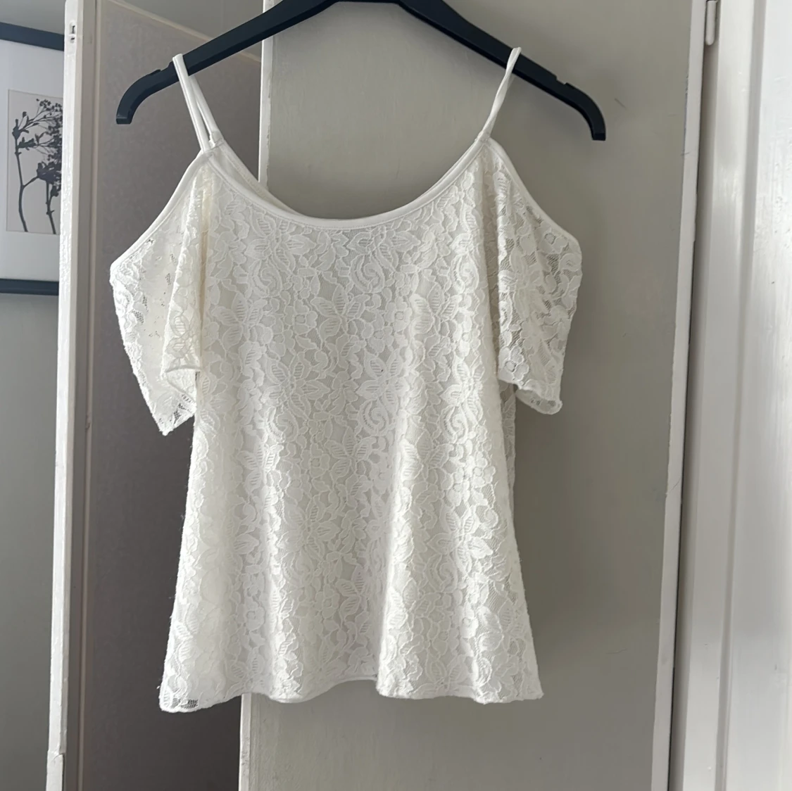 Superfin vit blus i spets med offshoulder och tunna axelband. đ€