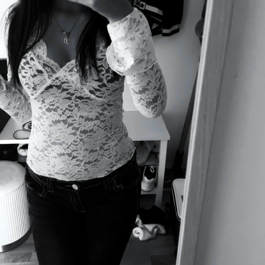 Vit spetsblus från Amisu XS